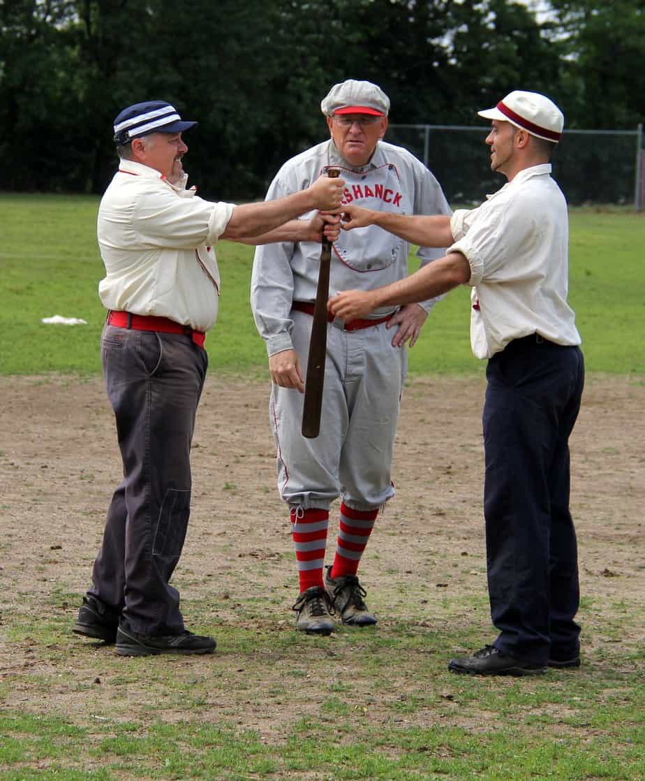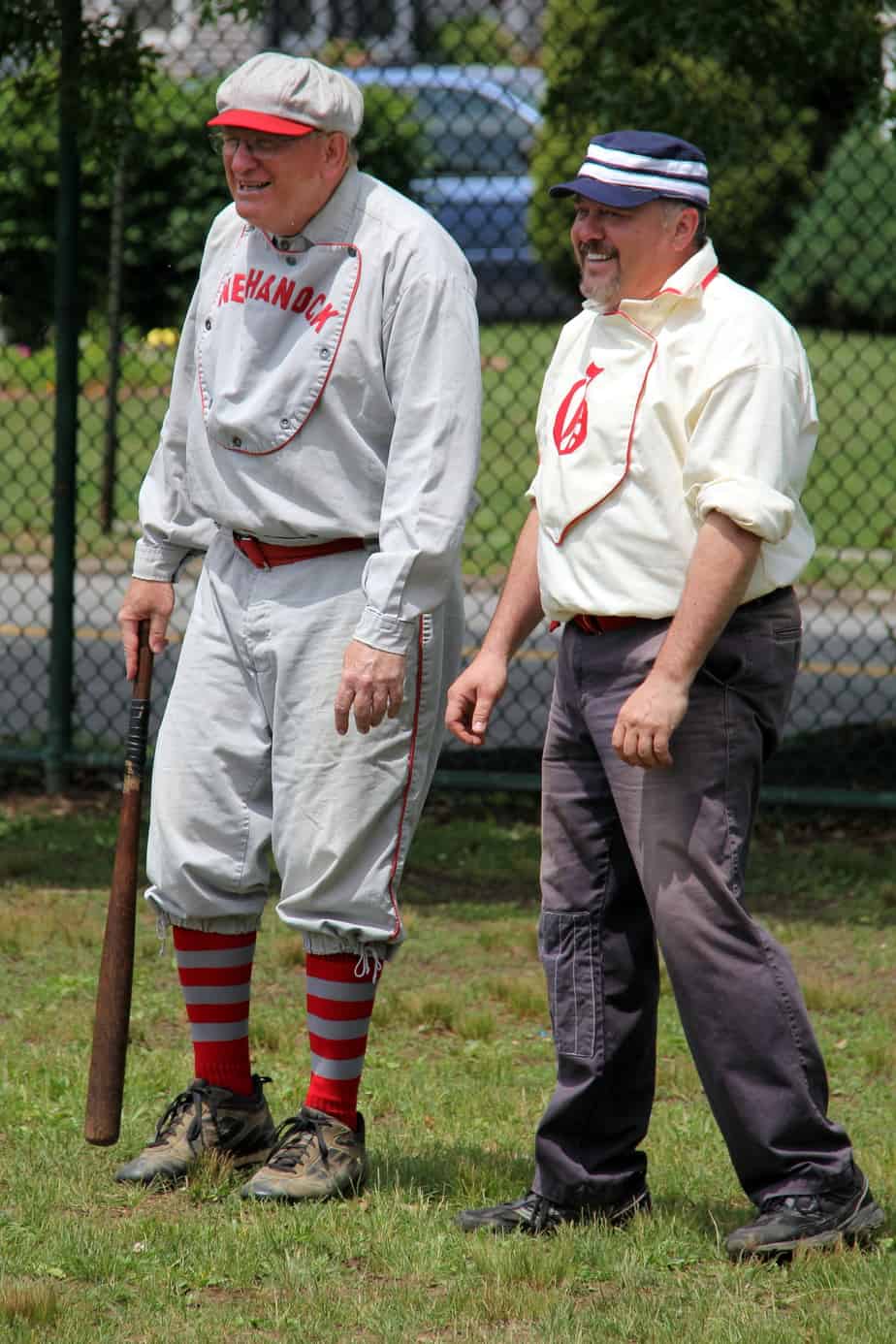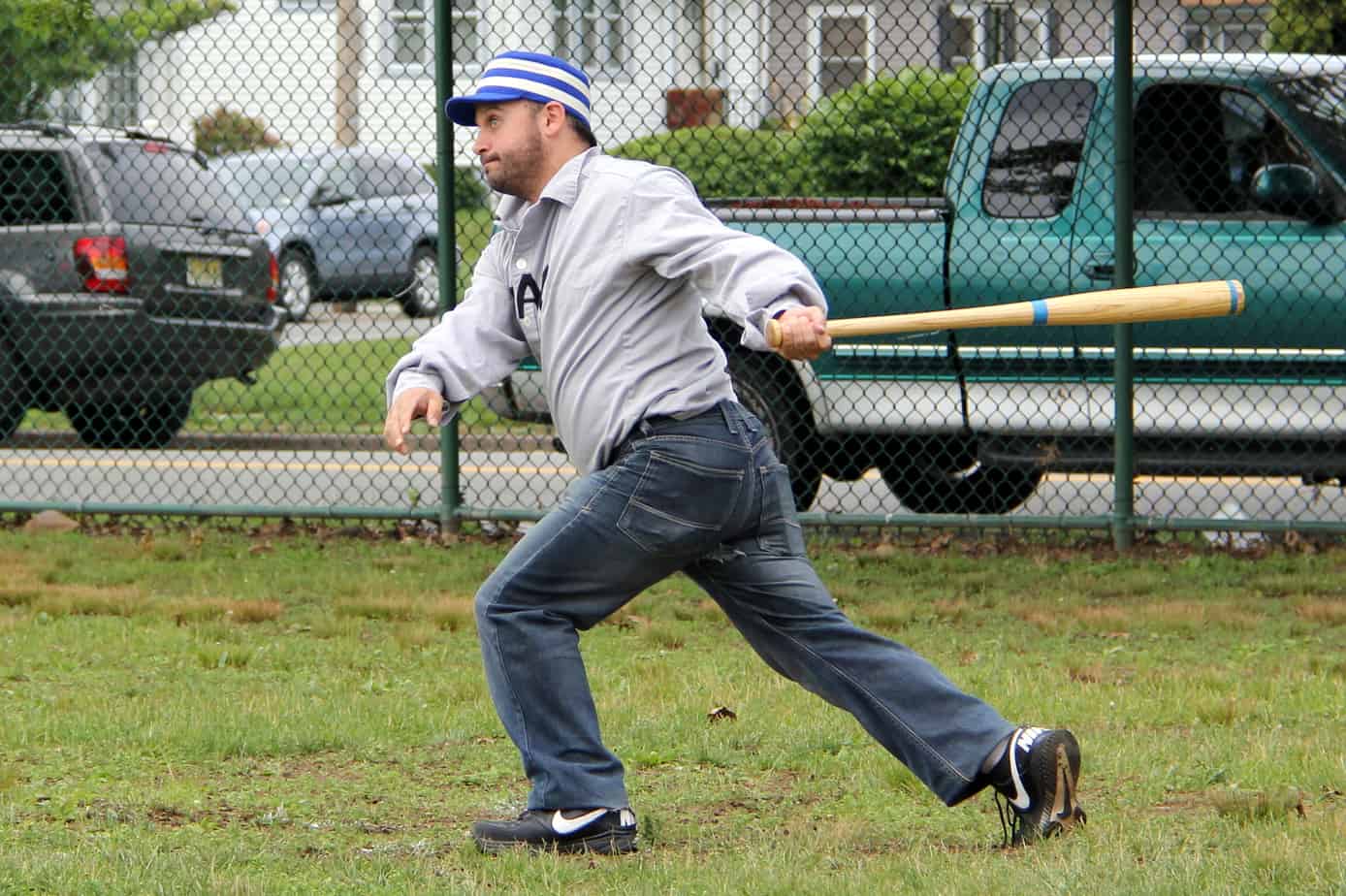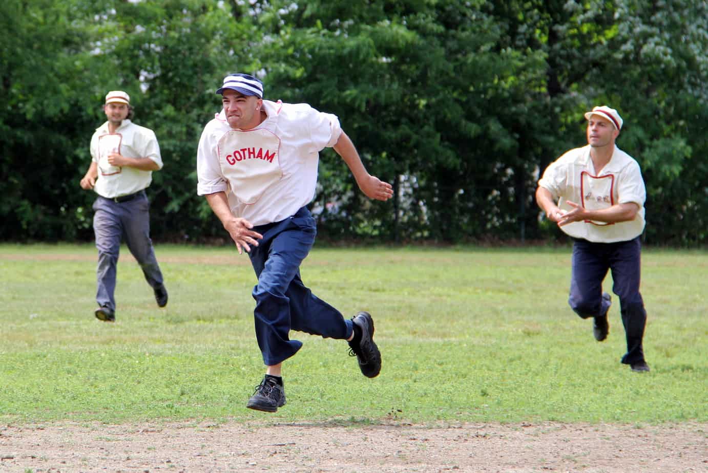 A couple weeks ago, we traversed the Passaic in the morn to join the bugs and cranks for a base ball match between the Atlantics of Brooklyn and the Gothams of New York held on the grounds in Paterson. T’was a merrie affair played under 1864 rules and featuring great displays of athletic prowess. The Atlantic Base Ball Club struck many successful hits — stingers, daisy cutters, banjo hits and cloud hunters — during the first frame, tallying several aces to take a big lead. But the ballists of the Gotham Base Ball Club of New York were resolute, recording a few aces of their own and slowing the strikers of the Atlantics. In the end, the Atlantics prevailed, 12-4. (They also triumphed in a second game, which we did not attend, 21-9.)