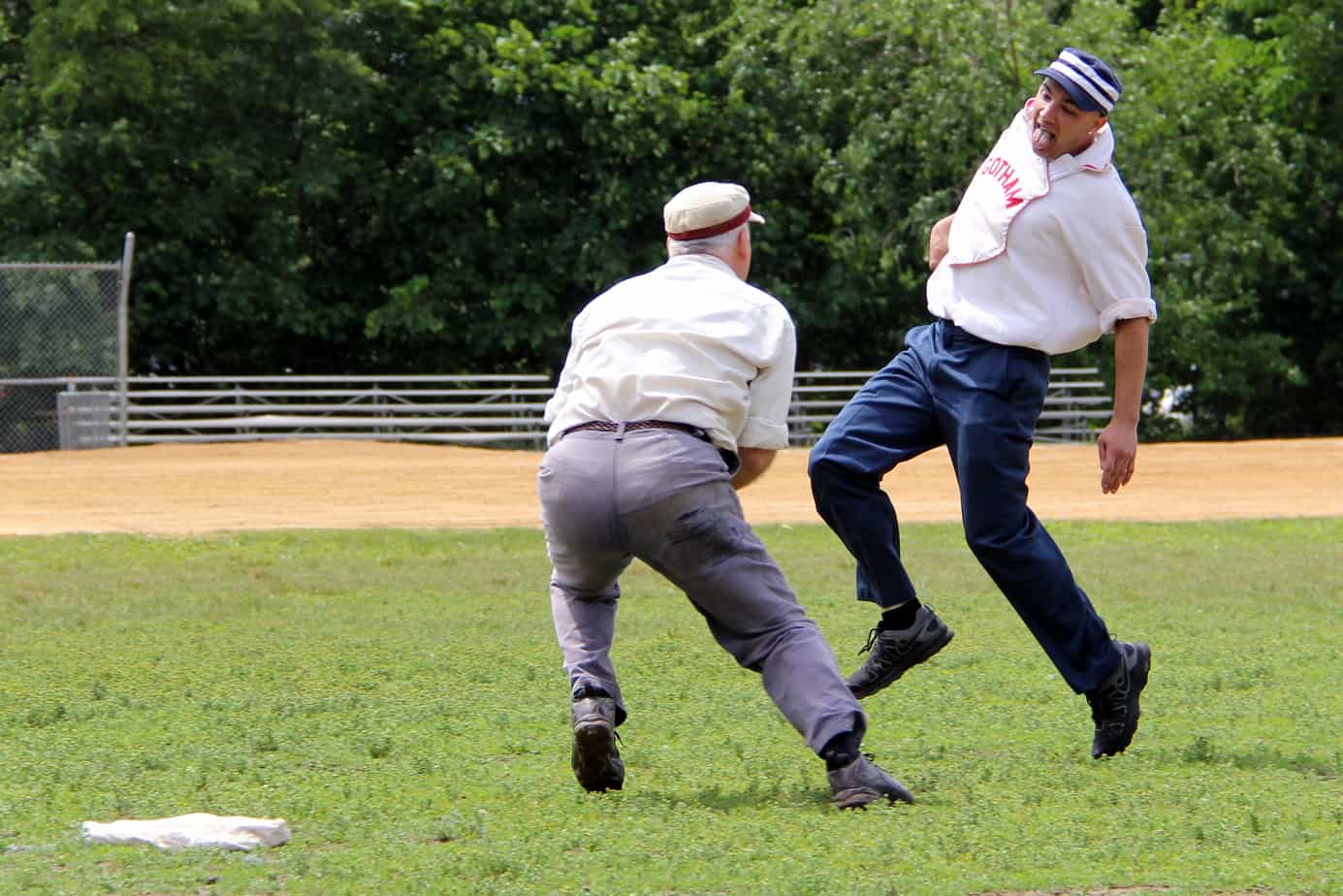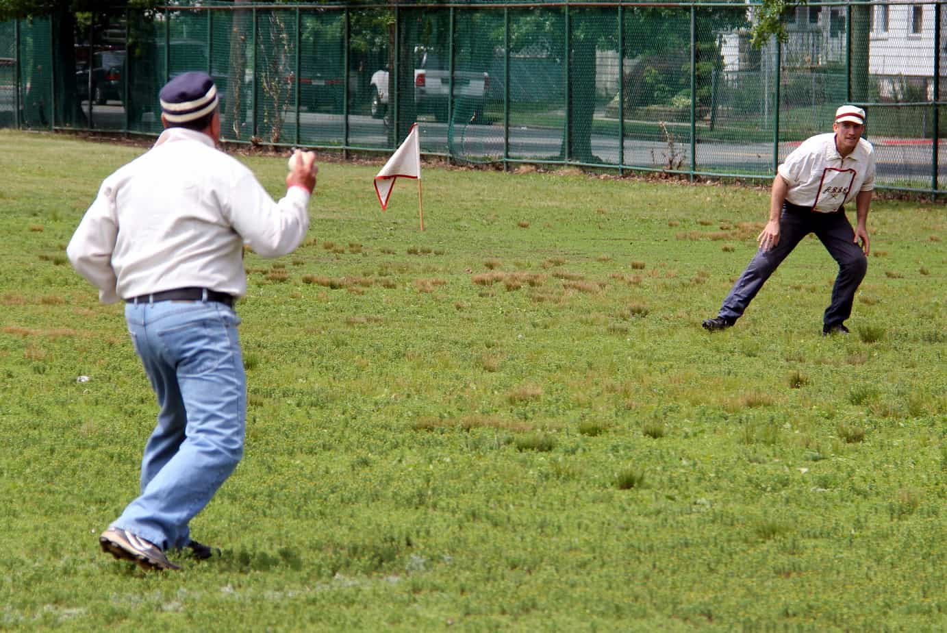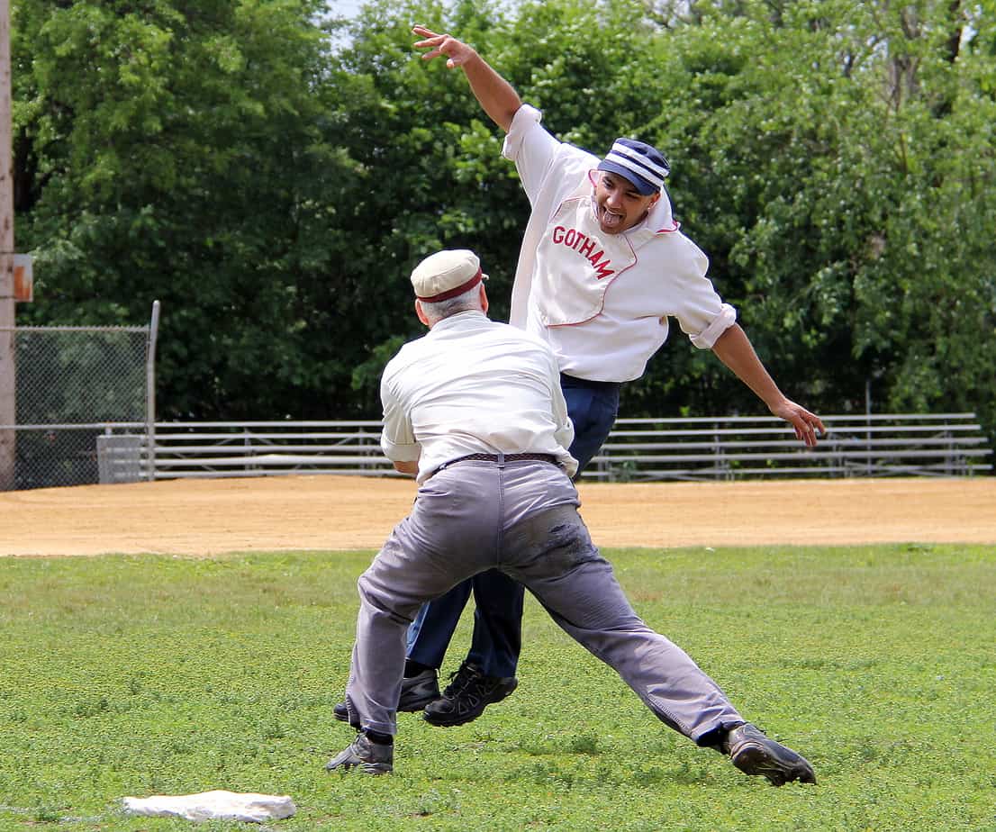 The bowler for the Gothams was particularly adept, entertaining the rooters with quick throws to the basetenders — or often a fake before turning and firing to the plate. At times, he’d offer up a dew drop to throw off the striker’s timing.