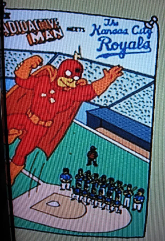 The Simpsons snuck another slight baseball reference into Sunday night’s show that I just caught while watching it on DVR this afternoon. In the above image, tacked to the wall behind Comic Book Guy, is an issue of the Radioactive Man comic: Radioactive Man meets the Kansas City Royals.